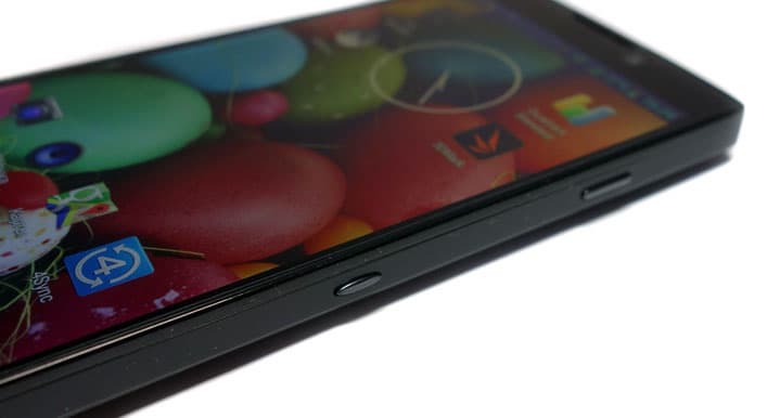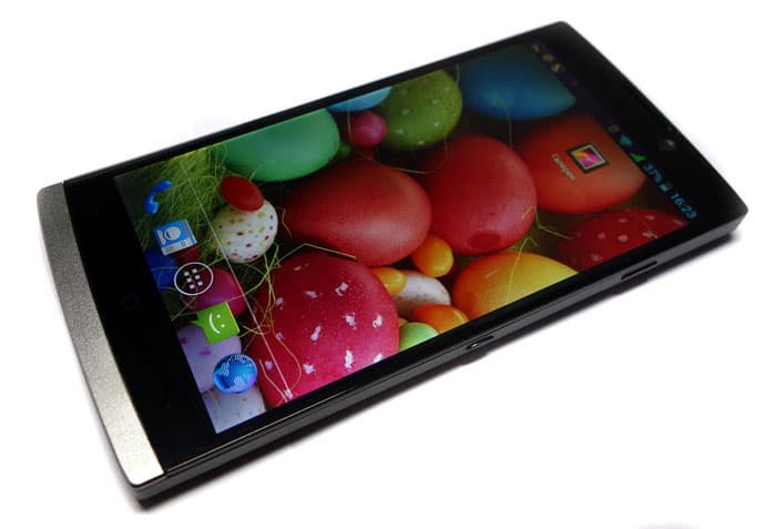 Отсутствие OGS не относится к минусам, но внимательный взгляд выдает троящееся отражение в экране. Зато дисплей P780 защищен Gorilla Glass 2, что крайне редко встречается в смартфонах B-брендов. На всякий случай покрытие было испытано на прочность острым ножом, а также двумя падениями на асфальт с метровой высоты. Олеофобный слой теоретически должен препятствовать образованию раздражающего слоя отпечатков, но это не происходит в полной мере. Справедливости ради отметим, что стоит буквально один раз провести ладонью по экрану, как от налета ничего не остается.