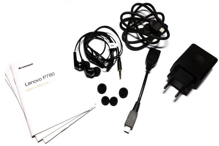Lenovo P780 разнообразит набор аксессуаров гарнитурой с комплектом сменных насадок и коротким кабелем OTG.