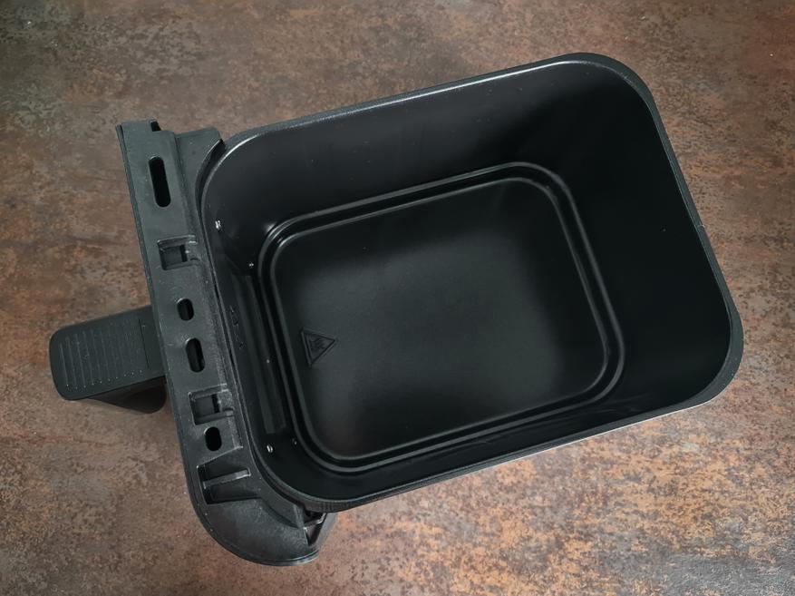 При использовании устройства сразу обращаешь внимание на несколько продуманных моментов. Когда извлекаешь чашу во время готовки, на панели появляется сообщение OPEN. Процесс автоматически приостанавливается, таймер останавливает отсчет. После возвращения чаши на место программа продолжается с того же момента, без необходимости всё запускать заново. В основе системы нагрева лежит технология Rapid Air. Что значит, воздух в камере нагревается практически мгновенно. Даже если извлечь чашу посреди цикла, температура быстро восстанавливается, и приготовление продолжается в прежнем режиме. По окончании программы аэрогриль подает серию звуковых сигналов: пять основных и три дополнительных. При этом нет необходимости давать устройству «отдохнуть» перед следующей готовкой, его можно сразу использовать повторно, не дожидаясь остывания.