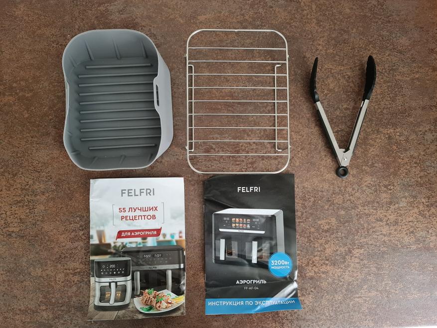 Сегодня я готовлю в электрогриле Felfri FF-AF-04, и это не просто устройство для жарки или запекания. Две независимые чаши, общим объемом 10 литров, позволяют готовить сразу два блюда одновременно, без смешения запахов и вкусов. А еще, это прибор, который способен заменить целый набор кухонной техники, взяв на себя функции духовки, фритюрницы, гриля и микроволновой печи.