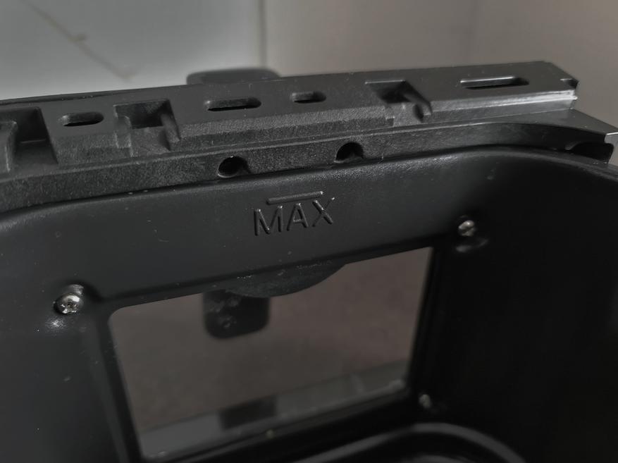 Боковые грани свободны от функциональных элементов, если не считать углубления снизу корпуса для удобного захвата и переноски гриля. Сзади можно заметить воздуховыпускные отверстия. Во время работы через них выходит горячий поток, поэтому стоит учитывать расстояние до стены или других предметов. Кабель питания короткий, всего 80 см, и сначала это может показаться неудобным, но на практике: устройство становится безопаснее. Так как устройство достаточно мобильное, его легко брать с собой, например, на дачу в летний сезон или даже на пикник. Однако если бы кабель был длиннее и гриль часто ставили посреди кухни или в открытом пространстве, возникла бы другая проблема: во время работы из вентиляционных отверстий выходит поток горячего воздуха, и при неосторожном движении можно случайно попасть под него. Это особенно рискованно, когда кто-то проходит сзади, не зная об этом. Поэтому короткий кабель в данном случае выглядит вполне оправданным решением, он делает использование прибора безопаснее и помогает держать его ближе к стене, где меньше вероятность случайного контакта с горячим воздухом. Особенно это важно учитывать, если в доме есть дети. Поэтому короткий кабель, вероятно, сделан специально, чтобы гриль стоял устойчиво и не тянулся далеко от розетки.