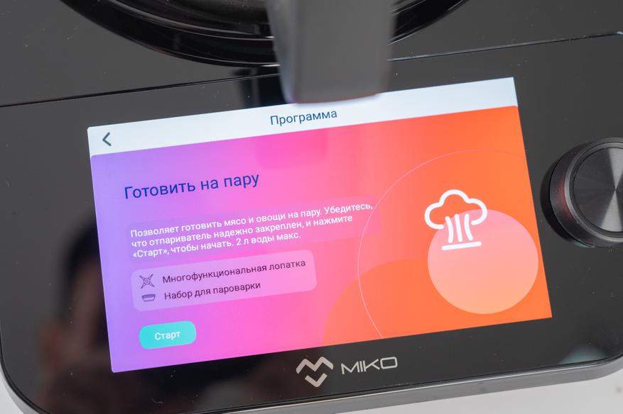 Дополнительно рецепты доступны и прямо в меню самого устройства. Цветной сенсорный экран отображает программы, таймеры и подсказки. Смартфон помогает планировать покупки, а сам робот фактически берёт на себя роль повара.