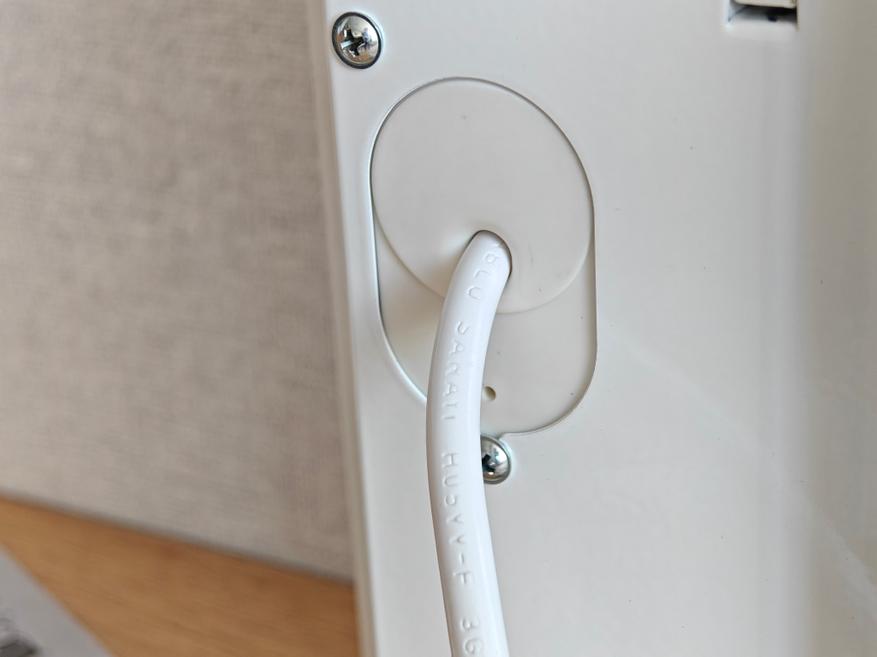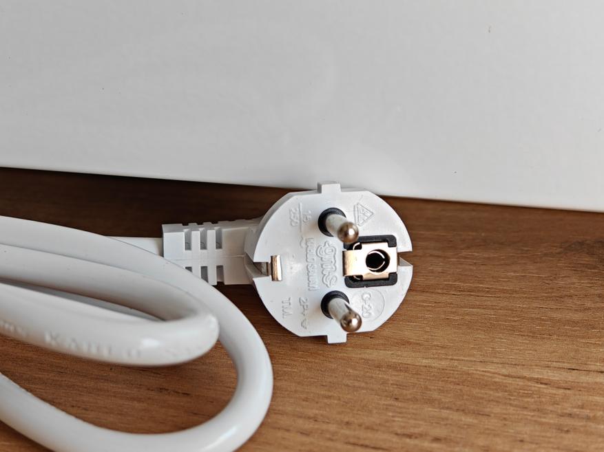 Сетевой кабель толстый длиной 130 см, внутри медные жилы, а на конце евровилка с заземлением. Кабель заходит в корпус сзади, в месте захода отмечу наличие пластиковой вставки, что правильно, чтобы температура от нагретого металлического корпуса не передавалась на кабель.