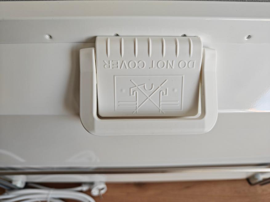Для управления нагревом помещения используется механический регулятор сзади. Регулятор имеет 5 положений, отмеченных цифрой и 5 промежуточных положений. Положение со значком «снежинка» — это режим не для обогрева помещения, а чтобы предотвратить замерзание. Этот режим используется для поддержания едва теплой температуры (около 6°С) в технических помещениях или в жилых помещениях, когда в них никто не живет. Цифры на регуляторе крупные, и ориентироваться стоит на явно заметный треугольник. Выступы ощутимые, переключается регулятор с небольшим усилием и имеет фиксацию в каждом положении. Проблем с использованием точно не возникнет.