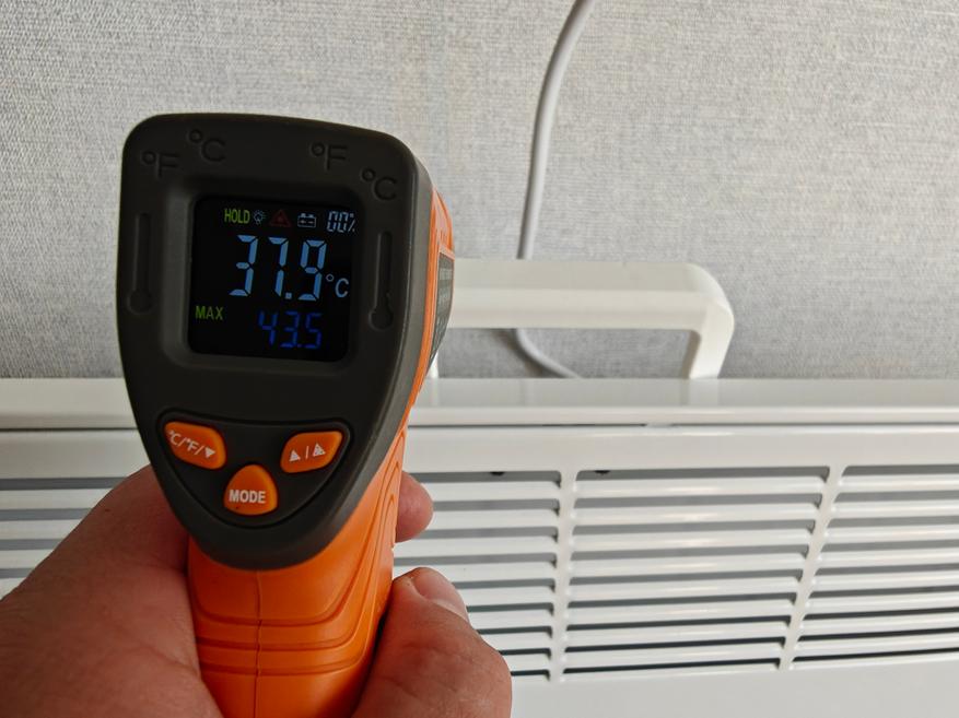 Потребление электроэнергии я также фиксировал. Максимальная заявленная мощность 2200 Вт. Во время нагрева прибор зафиксировал 1940 Вт. Так как у радиатора нет никаких конвекторов, то и шума совсем нет. Я еще отметил, что, благодаря надежным материалам, у конвектора нет никаких щелчков и треска при нагреве и охлаждении, которые присущи более бюджетным вариантам.