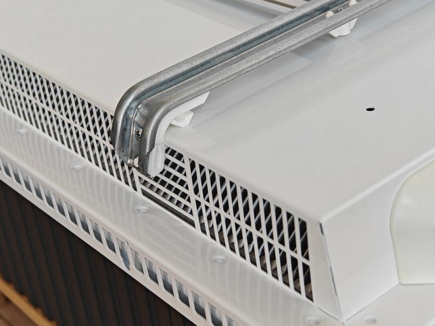 Внешний вид конвектора не особенно отличается от классического исполнения. Это четкие грани, острые углы и прорези для выхода теплого воздуха в верхней части лицевой стороны. Так как у меня уже были в пользовании бюджетные конвекторы, разницу в качестве исполнение почувствовал сразу. Корпус состоит из цельного стального листа толщиной 0.8 мм, а жесткость задает рама из листа толщиной 1 мм. Очень важно, что производитель не скрывает материалы окраски корпуса. Стальной лист после обработки очищается, наносится грунтовка на водной основе, а затем электростатическим способом наносится порошковое покрытие и обжигается при 200°С. В дальнейшем при использовании и особенно при высокотемпературном нагреве краска не должна выделять в воздух вредных соединений.