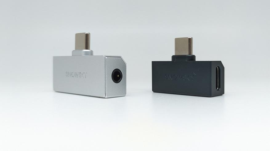 Оба ЦАПа имеют металлический корпус. У TINY A с одной стороны разъем Type-C, с другой — разъем 3,5. У TINY B с одной стороны 3,5 разъем, с другой — балансный 4,4 мм. На боковых панелях выгравированы название компании и логотип Snowsky. Снизу у каждого по светодиоду, а у TINY B еще и болтик под звездочку.