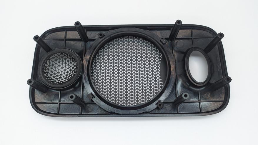 Конструкция выглядит неразборной, но передняя панель снимается и в корпусе есть 8 углублений с болтами. В эти же отверстия вставляется сама панель.