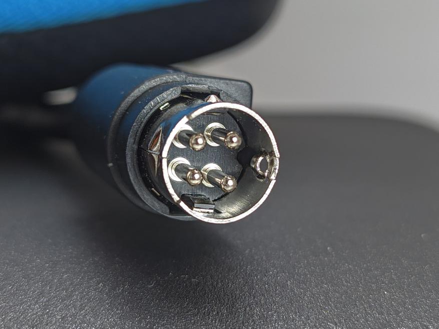 Соединительный кабель для колонок я не понял, с какими разъемами. Пытался найти такой же, но самое похожее, что нашел, это S-Video Mini DIN 4 pin. Общее у них то, что четыре пина расположены не квадратом, а трапецией, но у комплектного пины сильно толще. Хотел бы найти кабель с такими разъемами, но чтобы он был потоньше и помягче, потому что комплектный толщиной 6,7 мм и дольно жесткий. Понятно, что это запас прочности и наверняка хорошее экранирование, но кабель слишком толстый и неудобный для настольного использования.