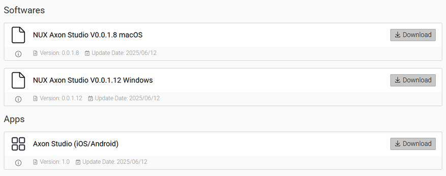 AXON STUDIO — это программа, а также и приложение, с фирменным параметрическим эквалайзером. Приложение можно скачать в Google Play, а установочный файл программы можно скачать на главной странице AXON 3 на официальном сайте NUX. Внизу страницы есть открытая по умолчанию вкладка «Support», и, помимо установщика AXON STUDIO для ПК на macOS или Windows и apk-файла для Android, там же можно скачать и инструкцию на русском языке в формате PGF. Для скачивания для iOS есть ссылка на страницу AXON STUDIO в apps.apple.com. Еще есть QR-код, который ведет на самого себя. По крайней мере, меня привел на ту же страницу, с которой я сканировал код.