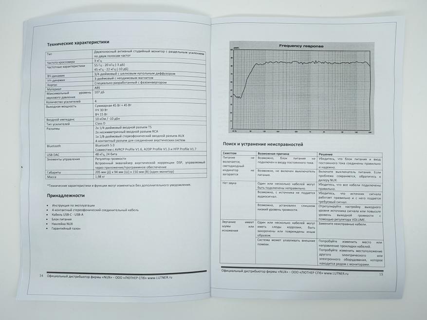 | Частотные характеристики | 55 Гц-20 кГц (-3 дБ), 45 Гц-22 кГц (-10 дБ) |
