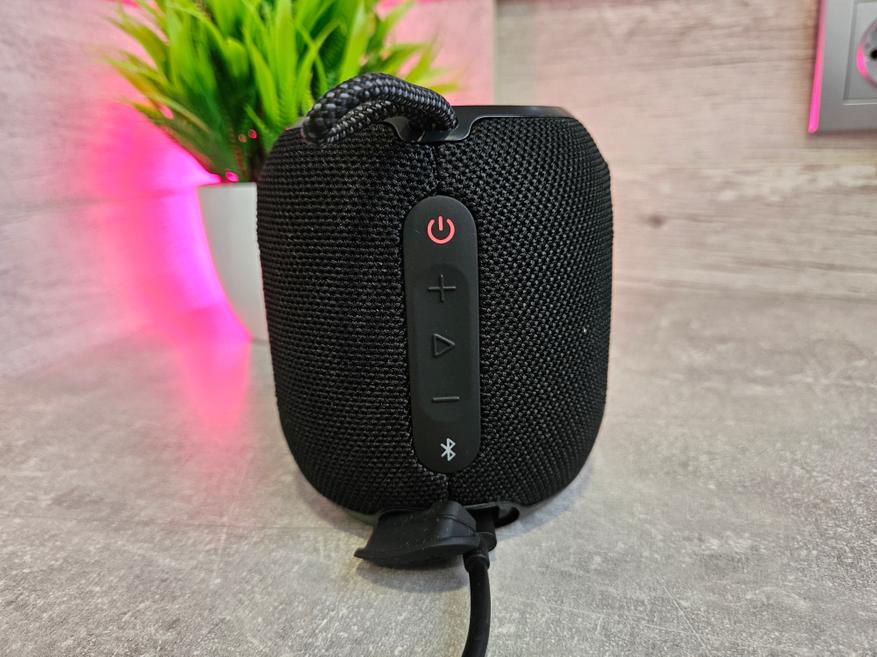 Низкие частоты. Это главный вызов для любой портативки. Для своего размера колонка выдает насыщенный и плотный бас. Он не «плоский» и не «дребезжащий». Работа пассивного радиатора здесь очевидна: он создает необходимую воздушную подушку и делает низы осязаемыми. Басовые линии быстрые, они не сливаются, а четко проработаны.