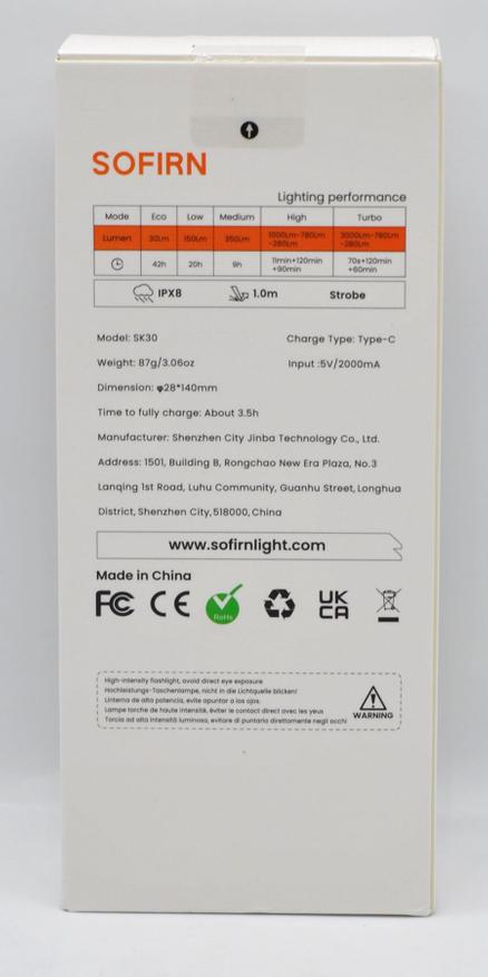 Коробка с лаконичным оформлением в духе других моделей Sofirn.