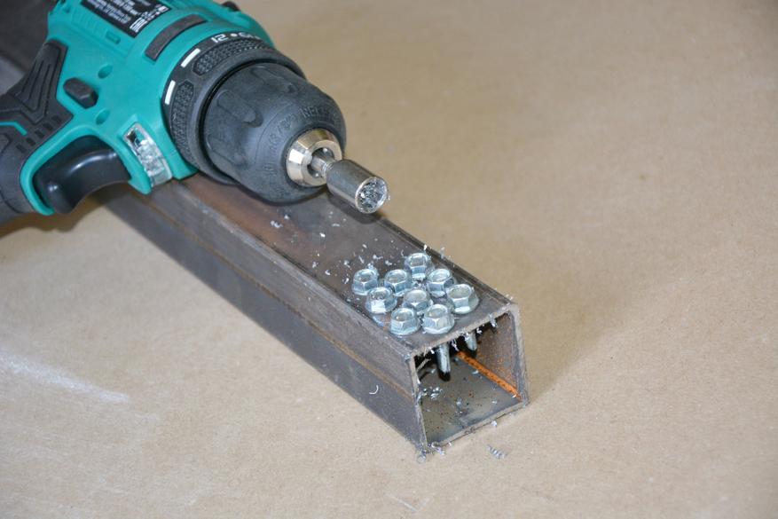 Как оказалось, сил шуруповерту с лихвой хватает и на более серьезный крепеж. Кровельные саморезы без проблем заворачиваются в квадратную трубу. Так, что и забор с беседкой можно смастерить, и крышу починить. Сил шуруповерту хватает.