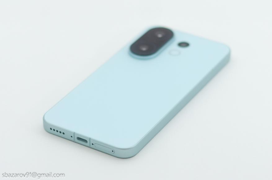 Цветовая гамма представлена двумя вариантами: «морской бриз» и «элитный черный». Оба цвета комплектуются матовой задней крышкой, невосприимчивой к скольжению. Рассмотрим смартфон со всех сторон. На левой боковой грани разместились сдвоенная клавиша громкости и кнопка включения, правая грань пустая. Сверху — пара дополнительных микрофонов, снизу — решетка стереодинамика, Type-C, основной микрофон и гибридный слот для двух nanoSIM-карт. Расширение памяти за счёт карты памяти не предусмотрено, единственный вариант — максимальный объем в 512 Гб при покупке. Ко мне в руки попал младший экземпляр на 256 Гб.