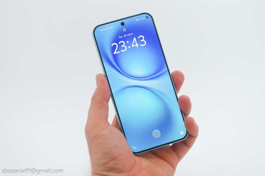 Датчик приближения — виртуальный. Фронтальная камера на 50 Мп от Samsung с автофокусом, сканер отпечатков пальцев — оптический и встроен в экран. Из неочевидного — пара LED-вспышек в верхней грани, которые включаются через настройки фронтальной камеры. Там же находится второй стереодинамик для разговоров и воспроизведения музыки. Звучит он в два раза тише и имеет явный дисбаланс в низких частотах по сравнению с нижним динамиком. Максимальная громкость достаточная, звонок вы точно не пропустите.