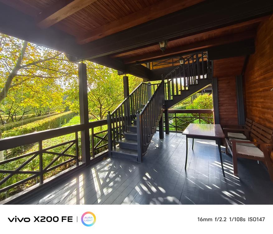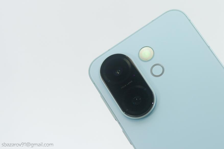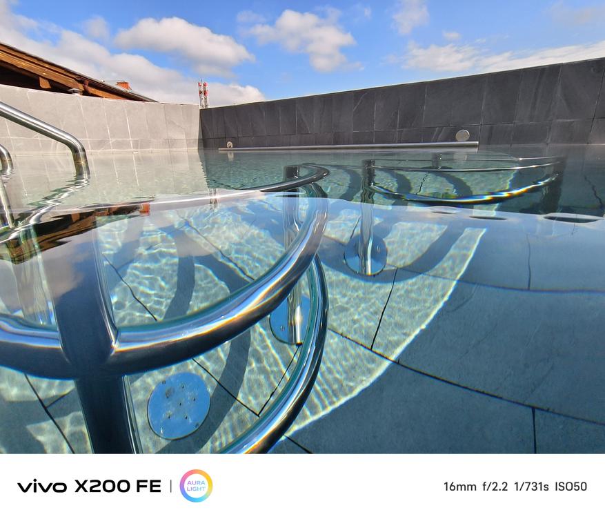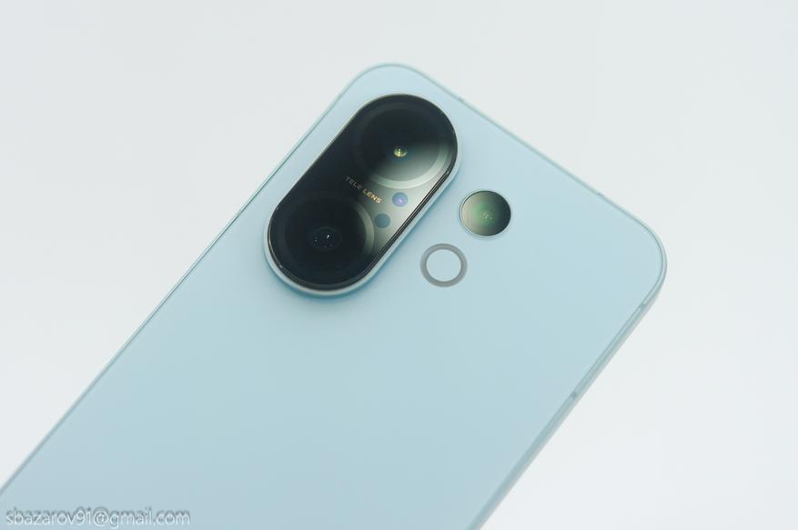 Это довольно серьёзный набор, охватывающий большой разброс фокусных расстояний: 1х, 2х (на основной) и 3, 6х (оптический). Камерный блок получился интересным: он включает 2 крупных сенсора, между которыми можно увидеть лазерный датчик фокуса и ИК-порт для управления бытовой техникой. Справа от них — ультраширик в плоском исполнении и кольцевая вспышка. Сначала мне даже показалось, что в vivo X200 FE всего две камеры, так умело их обыграли дизайнеры.