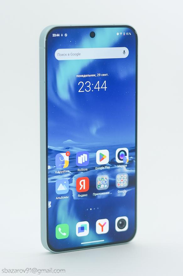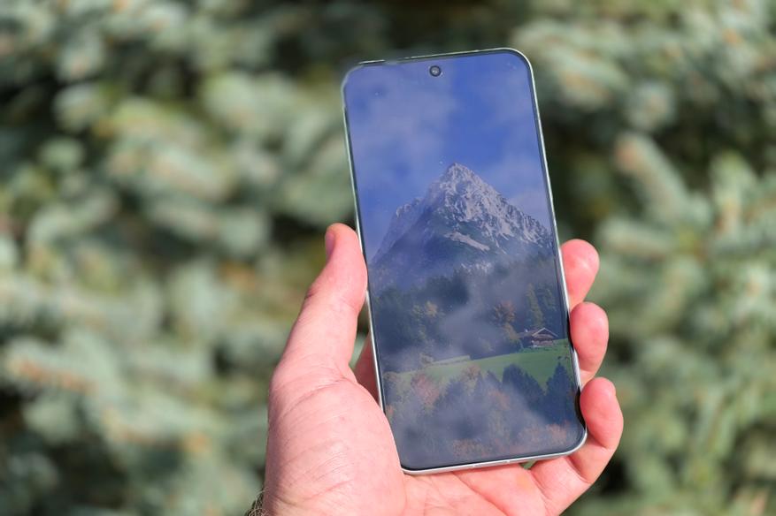 Ко всему прочему, экран радует минимальными рамками (отношение площади экрана к передней панели — 90%) и высокой пиковой яркостью, достигающей 5000 нит при просмотре HDR-контента. Однако в ручном режиме у меня получилось измерить лишь 956 нит. На солнце можно включить автоматическую яркость и получить небольшой прирост, но сильно лучше от этого не становится.