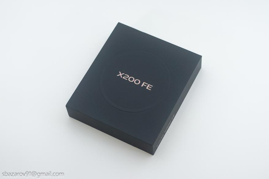 vivo X200 FE продолжает традиции и поставляется в плоской, квадратной коробке. Сверху — тиснение в виде окружности, а в центре — наименование модели. На обратной стороне — краткие технические характеристики.