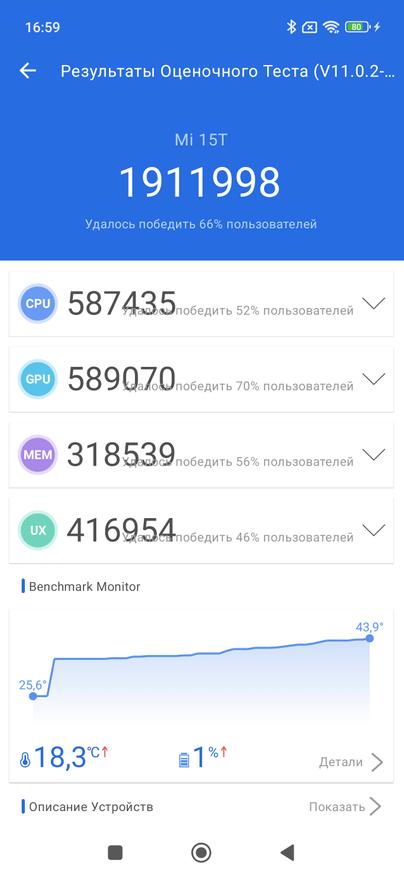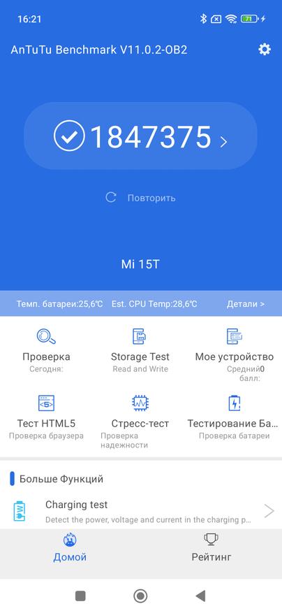 Благодаря современному процессору, смартфон набирает более 1.8 млн очков в Antutu. Очень показательный тест, в котором можно сравнить с другими смартфонами. На предыдущей версии смартфона Xiaomi 14T с процессором предыдущего поколения MediaTek Dimensity 8300 Ultra результат был на 600-700 тысяч очков меньше. Значительный прирост в производительности.