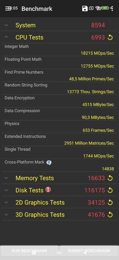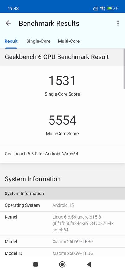 Еще ряд тестов, благодаря которым можно сравнить результаты с другими гаджетами. В тесте Geekbench 6, смартфон Xiaomi 15T набирает в single- (более 1500 баллов) и multi-core (более 5500 баллов).