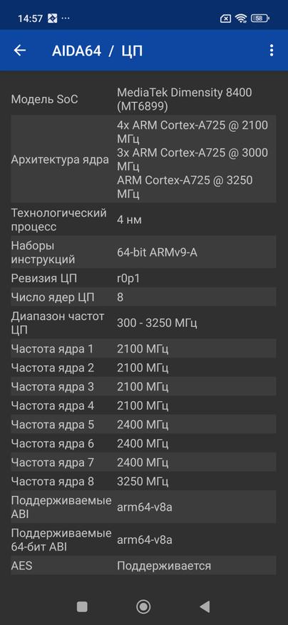 Напомню, что смартфон работает на процессоре MediaTek Dimensity 8400 Ultra построенном на техпроцессе 4 нм. Максимальная тактовая частота составляет 3.25 ГГц на ядре Cortex-А725. Графический чип Mali-G720 MC7 анонсированный в начале 2025 года. Производительность чипа находится на уровне Adreno 735, который устанавливается в Snapdragon 8s Gen 3. Поэтому можно играть во все современные игры.