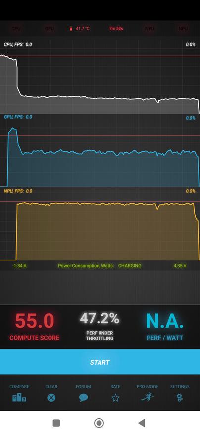 Проведенный троттлинг тест смартфона длительностью 15 минут показал максимальное значение GIPS на уровне 283. Сильных провалов в производительности или нагрев корпуса не зафиксирован.