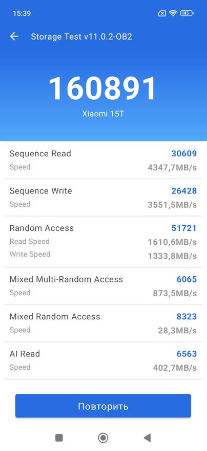 Ну и тестирование накопителя показало скорость в стандарте UFS 4.1. Это позволит копировать, загружать или редактировать файлы без видимых подвисаний, а программное обеспечение будет моментально загружаться.