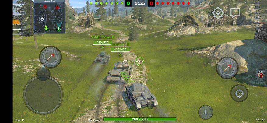Смартфон хоть и не флагман в этой линейке, но позволяет играть в требовательные игры на средних и высоких настройках. Графический чип Mali-G720 вытягивает на высоких FPS «танчики» при максимального графике. Кроме того, можно проверить и в других играх, таких как Genshin Impact, PUBG Mobile, Call of Duty Mobile, где значение FPS также находится на уровне 55-60.