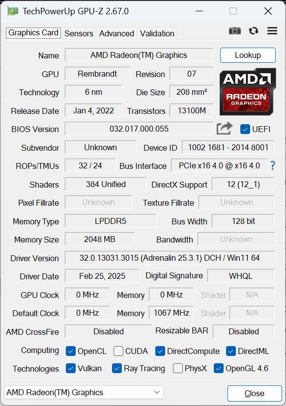 | Графическая система | Radeon 660M 1900 МГц 2 ГБ |
