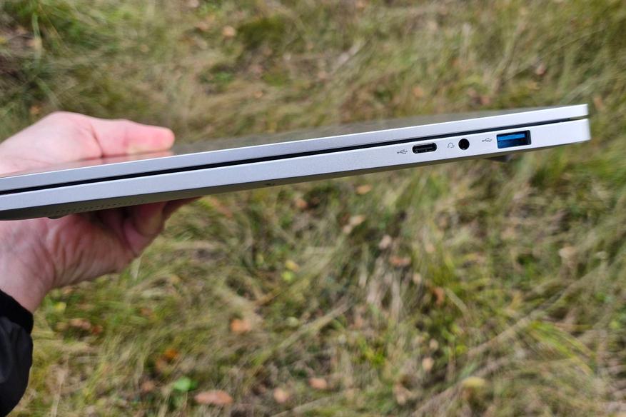 А вот справа порт Type-C уже USB 2.0, без «плюшек». Там же и USB-A (скорости 5 Гбит/с), но один. Захочешь подключить флешку — надо вынимать проводную мышку. Для проводных наушников/колонок есть типовой 3,5 мм порт.