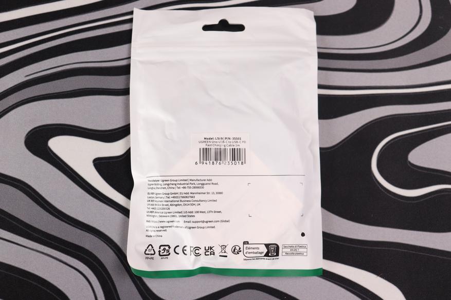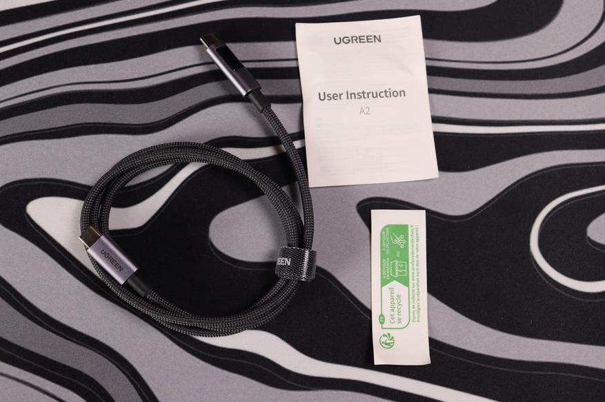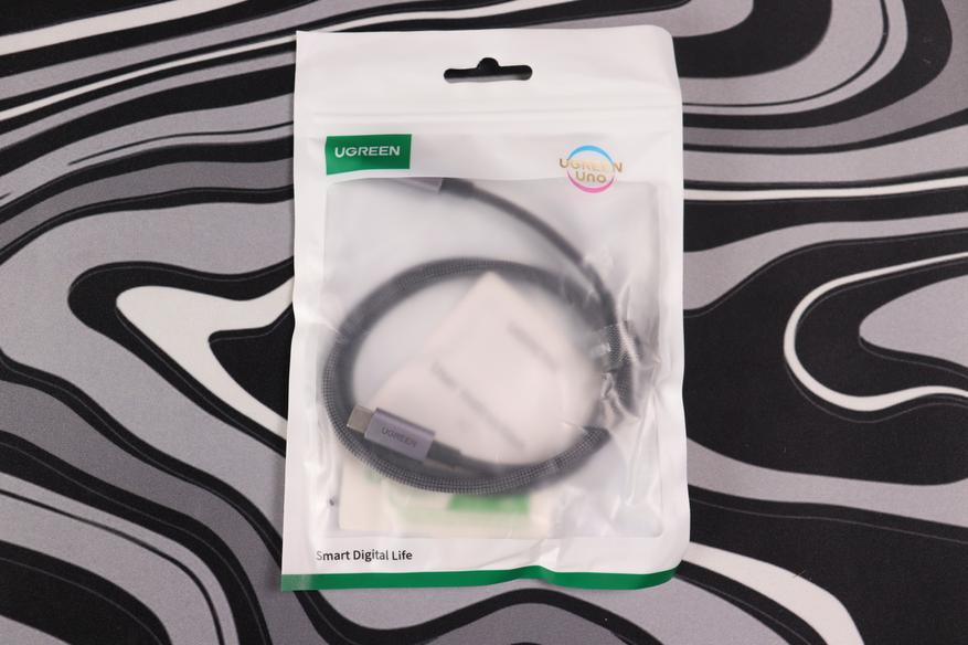 Пакет с застяжкой выполнен в фирменном стиле бренда — минималистичный дизайн с прозрачным окошком на лицевой части. Помимо самого провода внутри обнаружились: компактное руководство пользователя и фирменная стяжка-органайзер.
