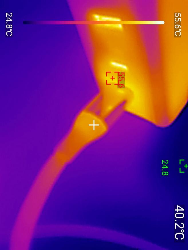 Длительная эксплуатация под нагрузкой не приводит к критическому повышению температуры. Используемые материалы и конструкция обеспечивают адекватный теплоотвод, исключая риск перегрева компонентов, что и подтверждает термограмма тепловизора UNI-T UTI260M спустя почти час теста на максимальной мощности