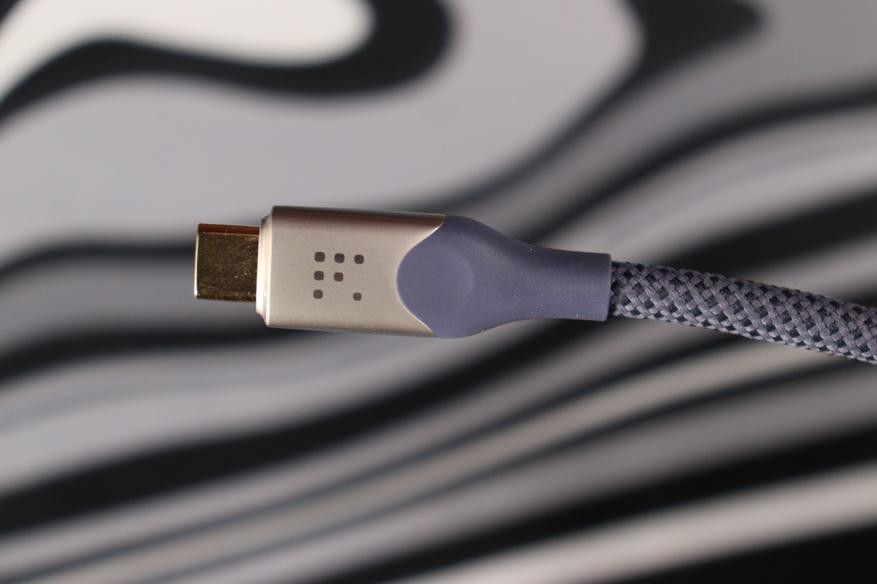 Кабель приятен в использовании — достаточно гибкий, не путается и не создает лишнего сопротивления при укладке. Качество материалов весьма высокое. Полная длина — 1,23 метра, вес — 58,5 грамм.