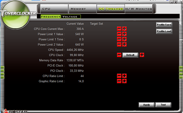 Ну а теперь о грустном. Мы пытались разогнать на плате Biostar Hi-Fi Z87X 3D процессор Intel Core i7-4770K, и результаты нас разочаровали. На других платах этот процессор без проблем разгонялся до частоты 4,8 ГГц, но в случае платы Biostar Hi-Fi Z87X 3D он стабильно работал только на частоте 4,4 ГГц (при опорной частоте 100 МГц). Кроме того, при задании значения частотного множителя 1,25 и выше (1,66 и 2,5) плата вообще отказывалась стартовать вне зависимости от установленного коэффициента умножения. Одним словом, эта плата плохо подходит для разгона процессоров.