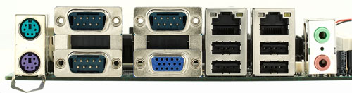 Дизайн компактных плат традиционно радует логичностью расположения всех компонентов, доступ к разъемам для подключения периферии, после установки платы в корпус, разумеется, не гарантирован, но лишь по той причине, что корпуса у встраиваемых систем бывают весьма затейливой формы. Тем не менее, приятно, что дополнительных трудностей у пользователей по вине разработчиков платы возникнуть не должно. Скромная функциональность чипсета реализована достаточно полно, в том числе, для 4 портов SATA возможно объединение в RAID-массив, также обращает на себя внимание поддержка встраиваемой ЖК-матрицы с интерфейсом LVDS) и HDTV-выхода (с поддержкой режимов вплоть до 1080i). Впрочем, есть версия и без расширенной видеоподдержки, а вот изобилие COM-портов (4, с учетом имеющегося на плате разъема для подключения дополнительного порта к трем, имеющимся на задней панели) и два гигабитных сетевых адаптера, причем подключенные через PCI Express — непременные атрибуты данной платы.