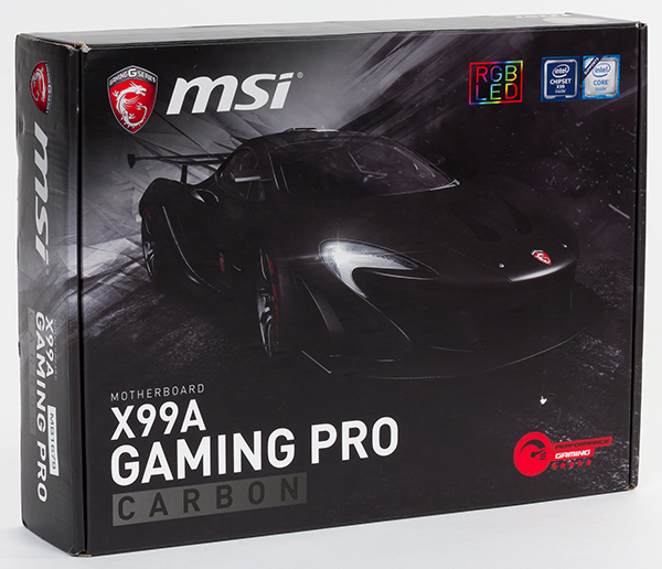 Плата MSI X99A Gaming Pro Carbon поставляется в компактной коробке, на которой нанесено название платы и перечислены все ее особенности.