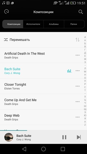 Звучит Huawei P8, несмотря на чрезвычайно тонкий корпус, весьма качественно. Внешний динамик здесь только один, но аппарат выдает и через него, и через наушники звук высокого качества для комфортного прослушивания. Это не уровень Oppo или HTC, глубокими басами смартфон не изобилует, но уж в плане громкости Huawei P8 точно никому не уступит. Звучание очень громкое, при этом звук чистый, без хрипов и искажений, яркий, насыщенный, низкие частоты тоже отчасти присутствуют, хоть и не в полной мере. В разговорном динамике речь собеседника, тембр и интонации остаются узнаваемыми. Для управления качеством звучания в фирменном плеере никаких ручных настроек нет, имеется лишь возможность включить или выключить технологию улучшения звука DTS, и то только для наушников.
