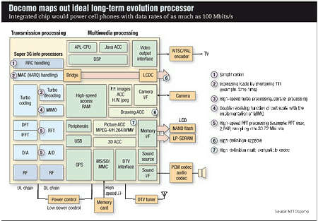 В настоящее время Docomo работает над спецификациями Super 3G-телефонов, которые будут удовлетворять вышеописанным требованиям стандарта LTE. Для таких телефонов требуется высокая степень интеграции процессоров приложений, базовой логики и высокочастотной части.