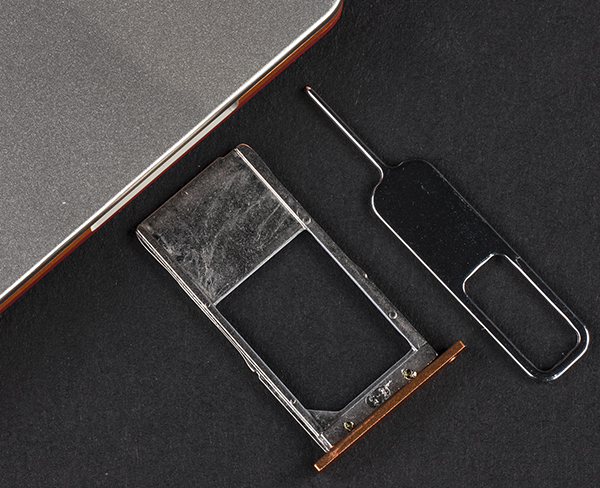 Поскольку корпус имеет монолитное неразборное строение, то здесь используется соответствующий способ установки SIM-карты: карточка въезжает в боковой слот на металлических салазках, для извлечения которых необходимо использовать комплектный ключик-скрепку. Аппарат поддерживает работу с одной SIM-картой формата Micro-SIM, но есть слухи о том, что существует и модификация смартфона с двумя SIM-картами, просто такой вариант не предусмотрен для нашего рынка.