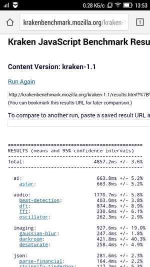 Что касается бенчмарков для оценки скорости движка javascript, то стоит всегда делать скидку на то, что в них результаты существенно зависят от браузера, в котором запускаются, так что сравнение может быть истинно корректным только на одинаковых ОС и браузерах, а такая возможность имеется при тестировании не всегда. В случае с ОС Android мы всегда стараемся использовать Google Chrome.