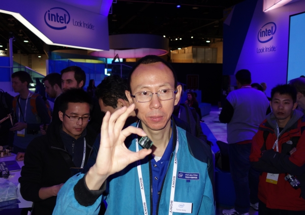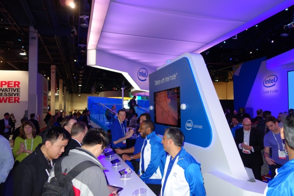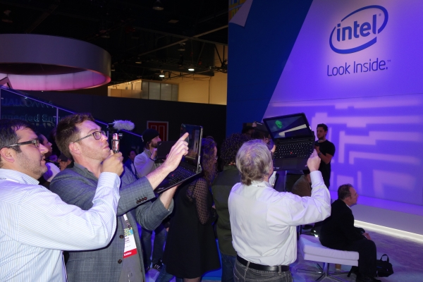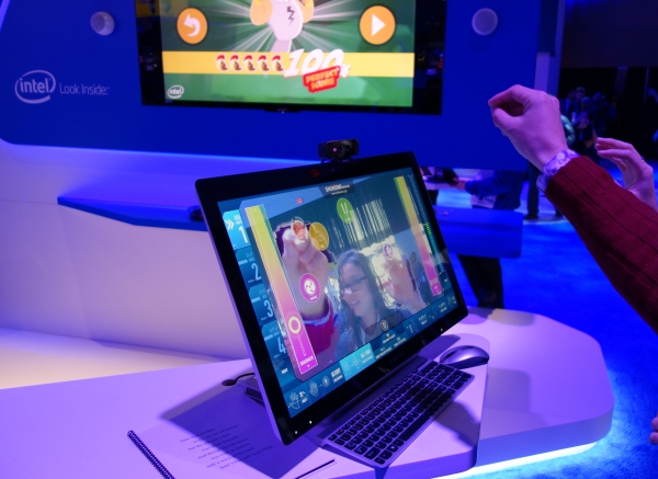 И начать, пожалуй, стоит с одного из самых значимых для индустрии «столпов», компании Intel, на примере которой опасность несвоевременного реагирования на смещение акцентов потребительских интересов прослеживается как никогда ярко. Запрыгнувшая на последнюю подножку набравшего ход поезда под названием «мобильные гаджеты» компания теперь пожинает плоды самонадеянности, с огромным трудом пытаясь отвоевать свою долю «распиленного» уже рынка смартфонов и планшетов. В этом году, как и прежде, Intel заняла со своим огромным стендом наиболее заметную позицию прямо напротив центрального входа в главный павильон выставки, но рассказывала преимущественно о 3D-камерах, показывала виртуальную дополненную реальность, демонстрировала бесконтактное управление жестами и делилась впечатлениями от работы различных умных гаджетов, основанных на ее новой мобильной платформе для носимых устройств.