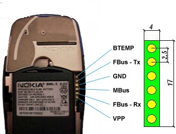 Обозначение интерфейсных контактов Nokia 3210