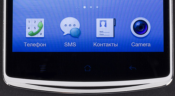 Сенсорные кнопки управления системой и приложениями под экраном имеют неяркую голубоватую подсветку, время их срабатывания может быть отрегулировано через соответствующие настройки. Там же в меню настраивается и работа светодиодного датчика событий (Skyline Notification 2.0), яркой полоской светящегося в нижнем торце, там же, где размещена решетка динамика. При входящих событиях светодиод начинает «дышать», медленно мигая белым светом прямо из-под выступающей металлической защитной рамки.