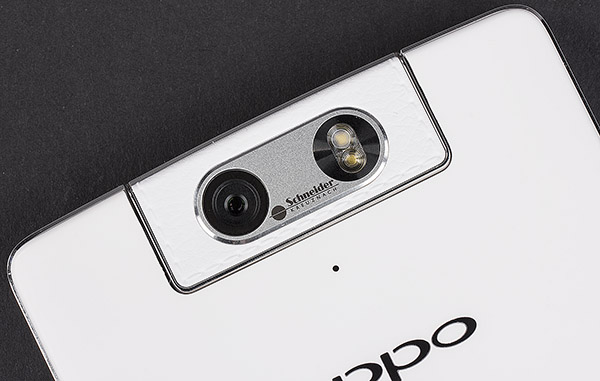 Oppo N3 оборудован совершенно необычным модулем камеры: кроме того, что она умеет вращаться на 206°, становясь, в зависимости от поставленных задач, то передней, то тыльной, камера еще и снабжена моторизированным приводом, в создании которого принимала участие немецкая компания Schneider Kreuznach.