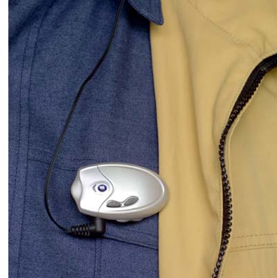 Новая bluetooth-гарнитура от Ericsson имеет необычный внешний вид: отделенный от наушника передатчик придает ей сходство со стандартной пешеходной гарнитурой, усиливаемое проводом, уходящим в карман рубашки. Там, однако, лежит не телефон, а небольшая, почти невесомая коробочка с bluetooth-передатчиком. В принципе, коробочку можно не только положить в карман, но и разместить где-нибудь на одежде — на куртке или свитере. Все упирается в длину провода, ограничивающую фантазию пользователя уровнем кармана рубашки.