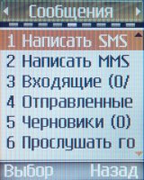 Органайзер. Из этого меню можно получить доступ к телефонной книге со списком абонентов (в режиме ожидания для этого можно воспользоваться правой софт-клавишей), непосредственно к планировщику событий и к системе заметок.