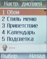 Настройки — всё, что касается настроек телефона, дисплея, переадресации, безопасности и др., можно найти здесь, также как и установку будильника. Можно задать до пяти будильников с разными периодами срабатывания (одноразово, каждый день или только по рабочим).