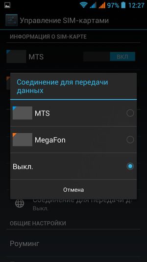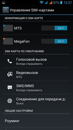 Смартфон поддерживает работу с двумя SIM-картами, и в целом работа с ними в меню организована по знакомому принципу: можно любую из SIM-карт назначить основной для организации голосовых звонков, передачи данных или отправки SMS-сообщений. При наборе номера также можно выбрать желаемую карту, вызвав контекстное меню из меню уведомлений. С сетями 3G может работать SIM-карта в любом слоте, однако одновременно в этом режиме может работать лишь одна из карт (вторая будет работать только в 2G). Работа с двумя SIM-картами организована по привычному стандарту Dual SIM Dual Standby, когда обе карты могут находиться в активном режиме ожидания, но одновременно работать не могут — радиомодуль здесь только один.