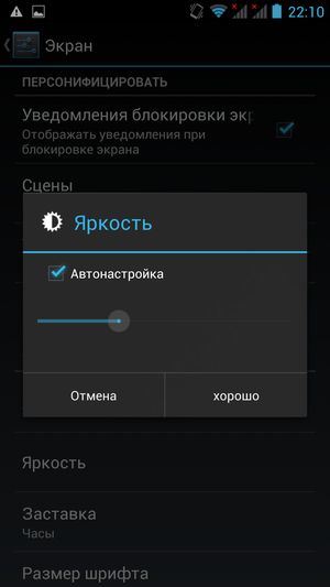При ручном управлении яркостью и при выводе белого поля во весь экран максимальное значение яркости составило около 375 кд/м², минимальное — 48 кд/м². Максимальная яркость не очень высокая, однако, учитывая эффективный антибликовый фильтр, даже в солнечный день вне помещения что-то на экране разглядеть можно будет. В полной темноте яркость можно понизить до комфортного уровня. В наличие автоматическая регулировка яркости по датчику освещенности (находится слева от прорези фронтального громкоговорителя). В автоматическом режиме при изменении внешних условий освещенности яркость экрана как повышается, так и понижается. В полной темноте в автоматическом режиме яркость уменьшается до 122 кд/м² (многовато), в условиях освещенного искусственным светом офиса (примерно 400 лк) яркость устанавливается на 220 кд/м² (приемлемо), в ярко освещенном окружении (соответствует освещению ясным днем вне помещения, но без прямого солнечного света — 20000 лк или немного больше) — повышается до 375 кд/м², то есть до максимума. Яркость в темноте слишком высокая, к тому же она не всегда понижается при переходе от освещенного офиса к полной темноте. В итоге к работе функции автоподстройки есть претензии. На любом уровне яркости значимая модуляция подсветки практически отсутствует, поэтому нет и никакого мерцания экрана.